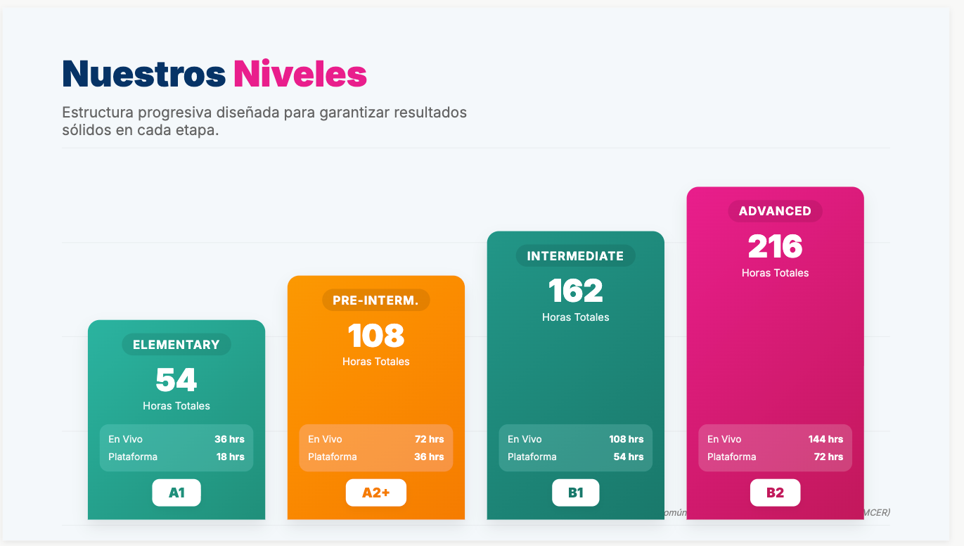 En estos momentos no es necesario agendar tu clase. Solo asiste de acuerdo al horario correspondiente a tu nivel.